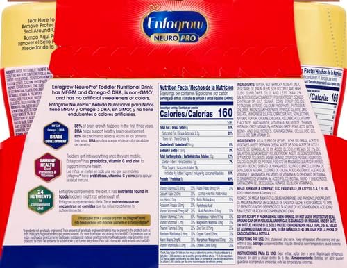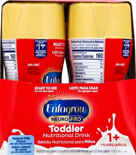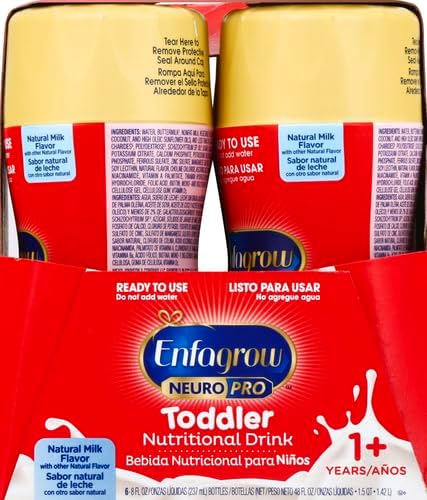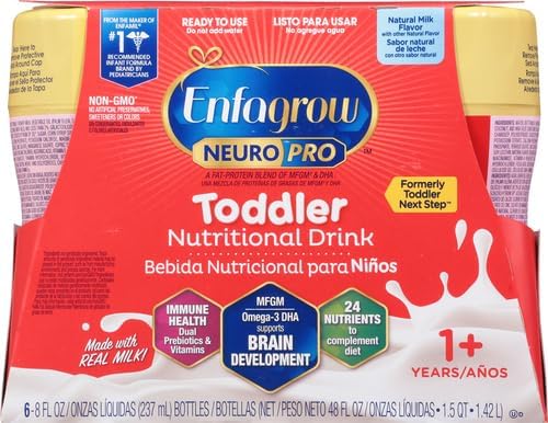 NeuroPro Toddler Nutritional Drink 8 fl. oz. Ready to Use (6 Bottles) Prebiotics for Immune Support, DHA for Brain Development, Iron, Non-GMO, Natural Milk Flavor (Toddler Next Step) Enfamil
