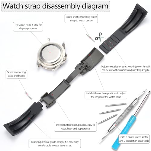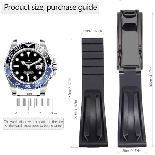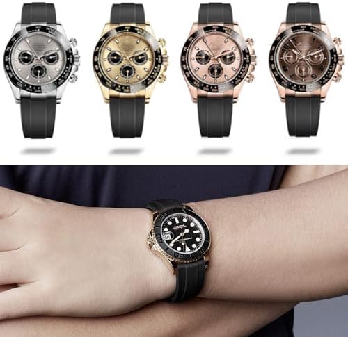 20mm 21mm Rubber Replacement Watch band Compatible with Rolex Ghost Daytona Yachtmaster Silicone Strap Deployment Buckle Wristband