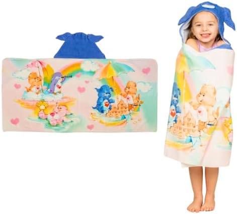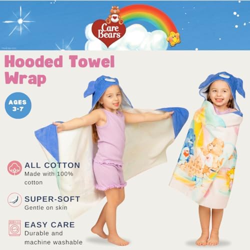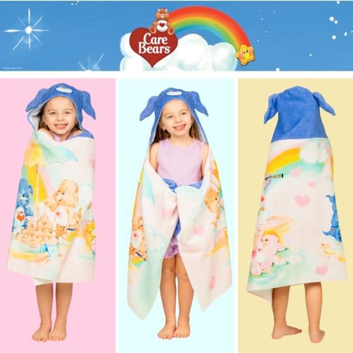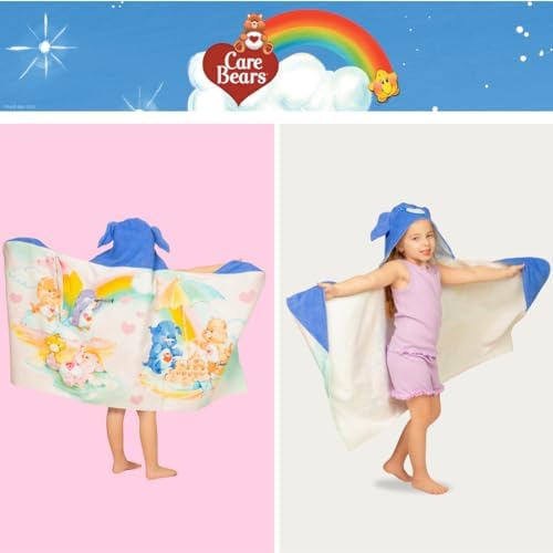Care Bears Retro Kids Super Soft Bath/Pool/Beach Soft Cotton Terry Hooded Towel Wrap, 24 in x 50 in, (Officially Licensed Product) By Franco