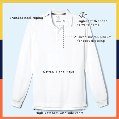 boys Pique Polo School Uniform Shirt With Long Sleeves for Boys and Girls