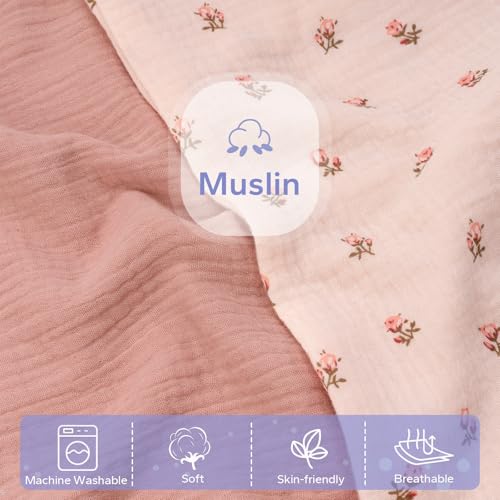 FUNUPUP Muslin Baby Lounger Cover Compatible with Snuggle Me Lounger, Infant Lounger Pillow Cover for Newborn, Removable Newborn Lounger Cover for Boys and Girls, Pink&Pink Flower