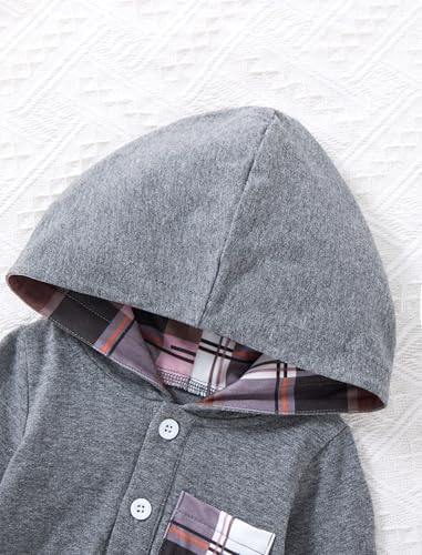 Sponsored Ad - Baby Boy Clothes Long Sleeve Hoodie Romper and Plaid Pants Set Fall Winter Baby Boy Outfit 0–18 Months