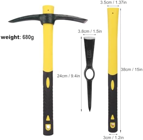 3 Packs 15 Inch Garden Pick Axes with Fiberglass Handle,Hand Pickaxe, Cast Steel of Pick Axes Head for Gardening, Camping, Prospecting, and Outdoor Activities