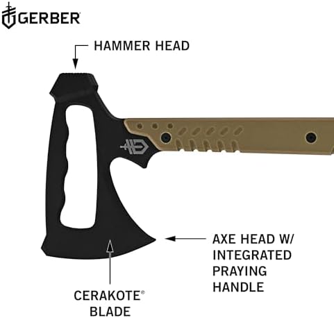 Gerber Gear Downrange Tactical Tomahawk Survival Multitool, Made in USA Camping Axe with Hammer Head and Steel Pry Bar, Includes Sheath with Integrated Molle Straps
