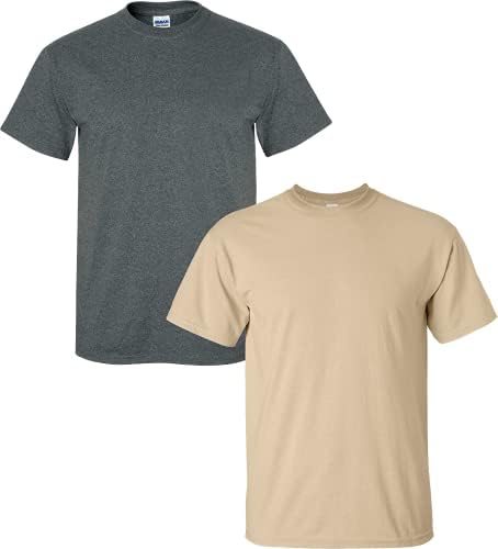 Men's Ultra Cotton T-Shirt, Style G2000, 2-Pack SML-DarkHeather+Tan