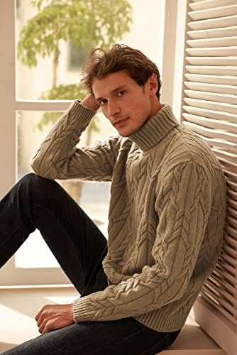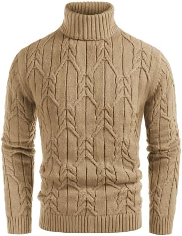 Sponsored Ad - Men Turtleneck Sweater Long Sleeve Cable Knit Sweaters Slim Fit Mock Neck Twisted Pullover