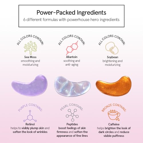 Under Eye Mask Variety Pack - 18 Pairs of Under Eye Patches for Dark Circles - With 6 Colors (3 Pairs/Color) - Gel Masks Puffy Eyes for Women - Vegan Cruelty Free Bridesmaid Gifts
