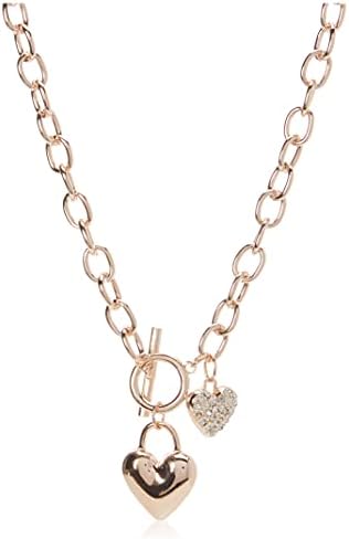 Rose-Gold-Tone Heart Lock Charm Toggle Chain Necklace
