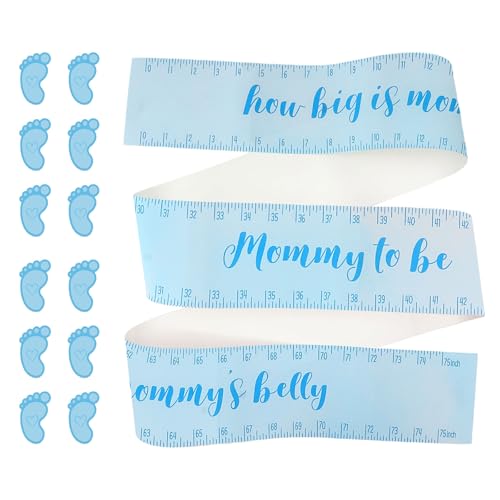 1 Roll 75 Inch Baby Shower Blue Measuring Tape Belly Measure Game with 12 Footprint Stickers Tommy Measuring Tape for Baby Shower Games Party Decorations Supplies