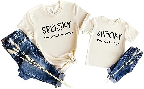 Halloween Matching Mommy and Me Shirts Cute Spooky Mama Spooky Mini Ghost Printed Shirt Fall T Shirts Tops