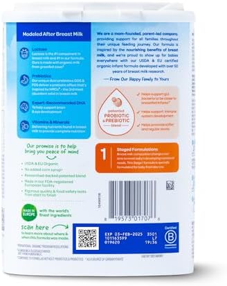 Organics Stage 1 Infant Formula, 0-12 Months, Milk Based Organic Baby Formula Powder with Iron, Probiotics & Prebiotics for Immune & Digestive Support, 22.9 Ounce (Pack of 1)