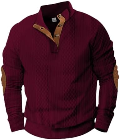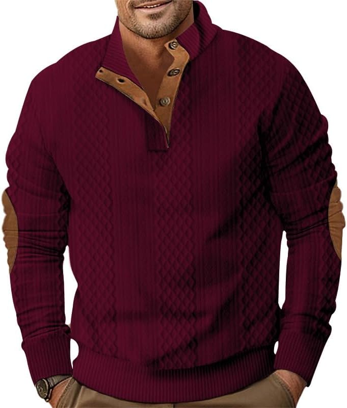 Sponsored Ad - Mens Fashion Stand Up Collar Cable Knitted Dress Sweater Pullover with Elbow Patch