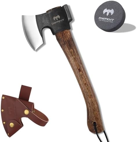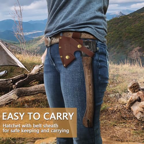 14.4" Hatchet, Camping Axe, Hand Forged Axe with Sheath, Bushcraft Hatchet with 1065 Carbon Steel and Beech Handle for Wood Chopping – Perfect for Outdoor Survival and Adventures