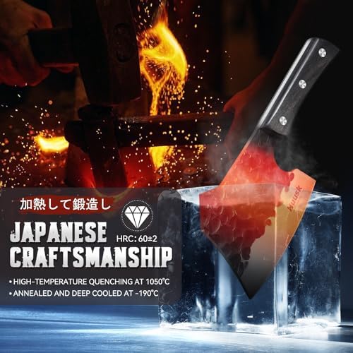 Huusk Meat Cleaver Knife Heavy Duty Bone Chopper, Hand Forged Kitchen Axe with Sheath, Full Tang Bone Chopping Knife, Japanese Butcher Knife for Meat Cutting, Kitchen Father Gift Idea Men