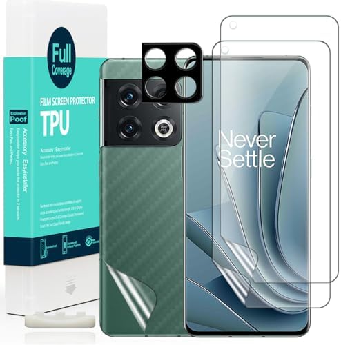 2 Pcs Screen Protector For Oneplus 10 Pro 5G 6.7",Flexible TPU Film,With 1Pc Camera Lens Protector,1Pc Back Film,Bubble Free[Easy to install]