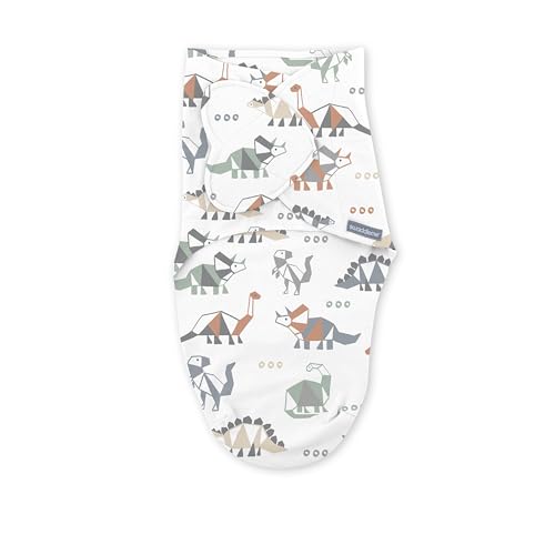 SwaddleMe by Ingenuity Monogram Collection Baby Swaddle, 100% Cotton, Improves Sleep & Calms Startle Reflex, 0-3 Months, Pocket Fold Design for Easy Changes, 1.0 TOG, 3-Pack - Dino Mite