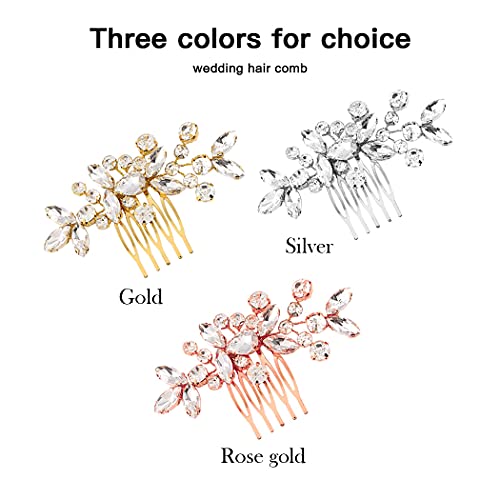 JAKAWIN Bride Wedding Hair Comb Crystal Hair Piece Rhinestone Bridal Hair Accessories for Women HC042 (Gold)