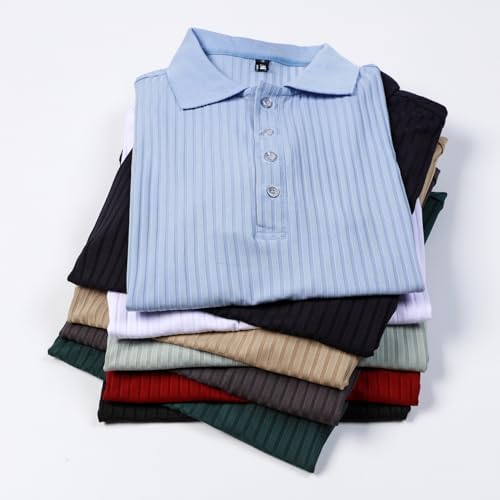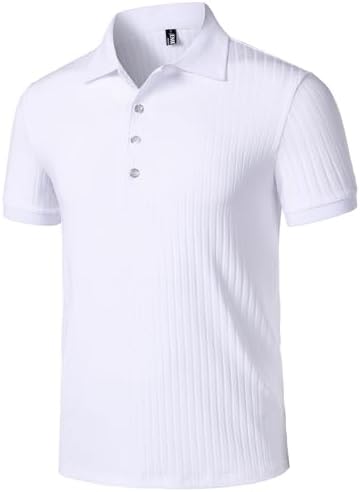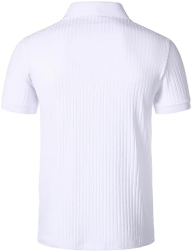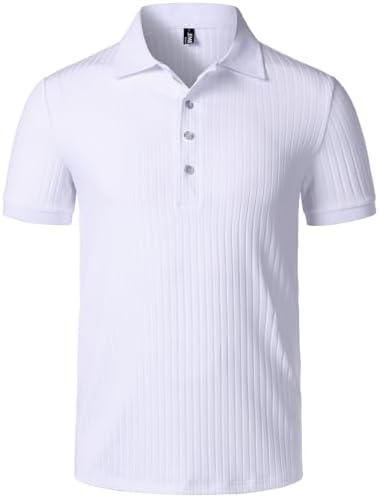 Men's Stretch Knit Slim Fit Polo Shirts Casual Short Sleeve Ribbed Collar Muscle Golf Shirt