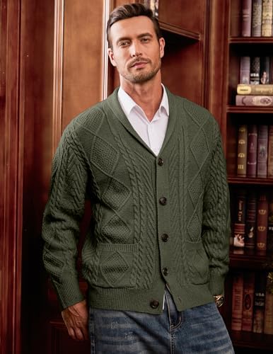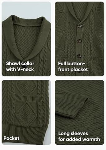 Sponsored Ad - Men's Casual Wool Blend Long Sleeve Shawl Collar Buttons Down Cable Knit Cardigan Sweater