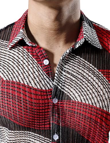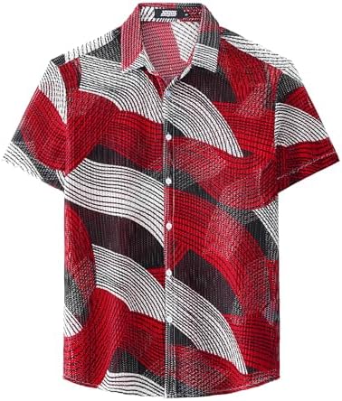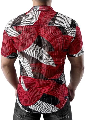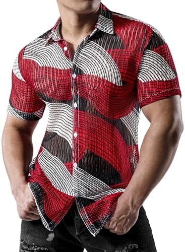Sponsored Ad - Mens Mesh See Through Floral Shirts Stretch Wrinkle-Free Regular Fit Short Sleeve Casual Button Down Summer Shirts