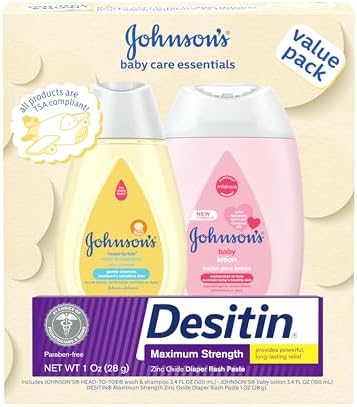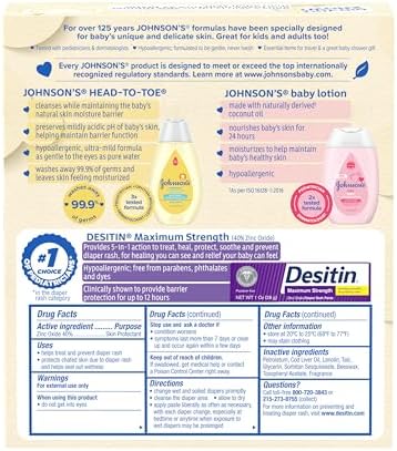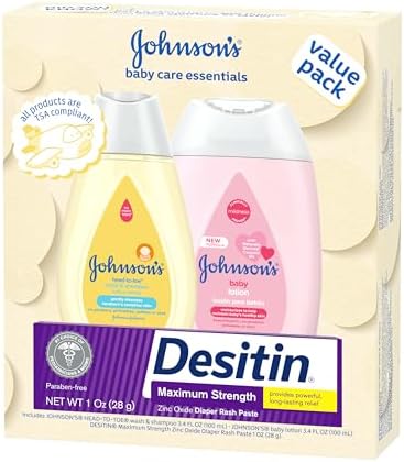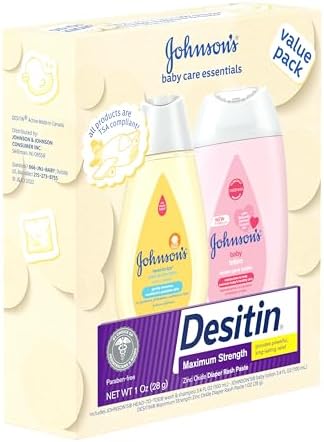 Johnson's Baby Care Essentials Gift Set, Body Lotion, & Zinc Oxide Diaper Rash Paste for Baby's Delicate Skin, Value Pack, Travel-Size, Bath Essentials Must Haves, Baby Gifts, 3 Items