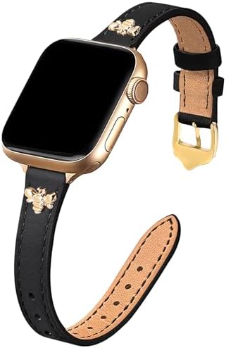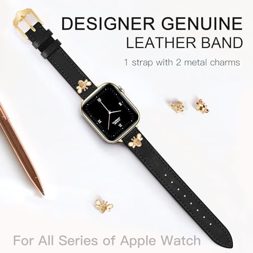Slim Leather Bands Compatible with Apple Watch Band 38mm 40mm 41mm 42mm 44mm 45mm 46mm 49mm, Top Genuine Leather Band with Charms, Feminine Design for Iwatch Ultra SE Series 10 9 8 7 6 5 4 3 2 1