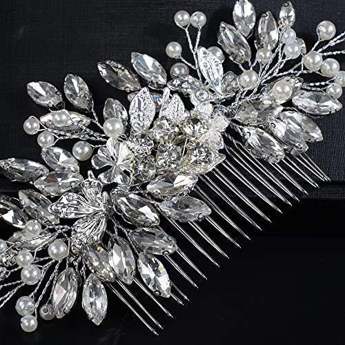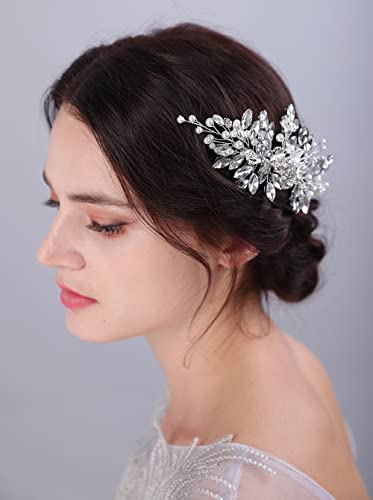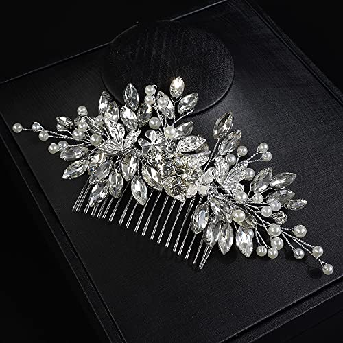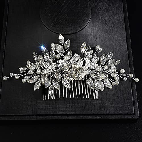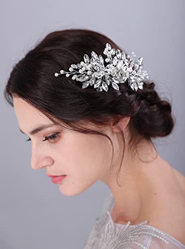 JWICOS Silver Bride Wedding Hair Comb Crystal Pearl Flower Bridal Headpiece Hair Accessories for Women and Girls