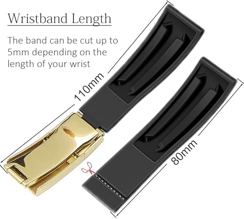 20mm Rubber Watch Band for Rolex Submariner, Daytona, Ghost, Yachtmaster, & More. Waterproof with a Classic Rolex-Style Deployment Clasp-Black