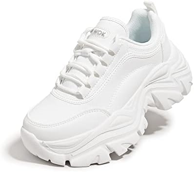 Sponsored Ad - Chunky Sneakers for Women Fashion Platform White Leather Casual Dad Shoes Comfortable Wedge Walking Sport Sneakers