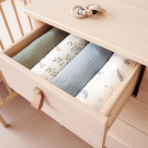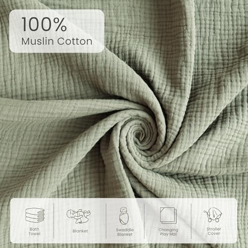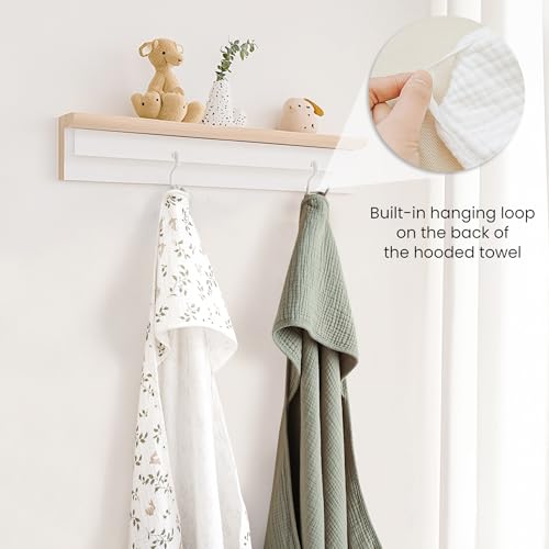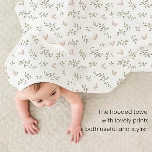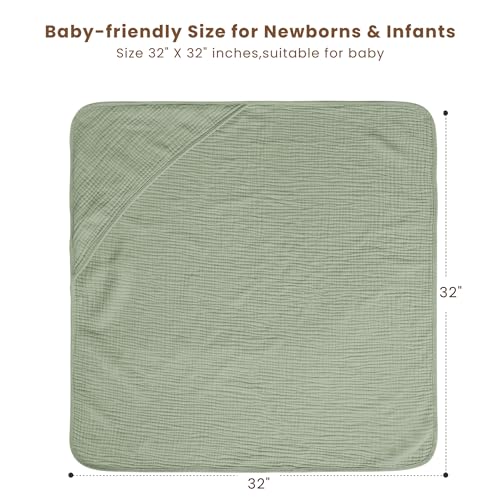 Konssy 2-Pack Muslin Hooded Baby Towels, 100% Cotton, Ultra-Soft & Absorbent Baby Bath Towels with Hood for Newborn & Infant (Fog Green, Sprout, 32" x 32")