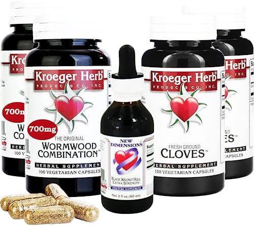 Kroeger Herb Products, Wormwood Herb Supplement Kit, Black Walnut, Clove, Quassia, Worm Wood Detox Cleanse - Capsules, Non-GMO, Gluten Free, No Preservatives or Fillers, Made in USA