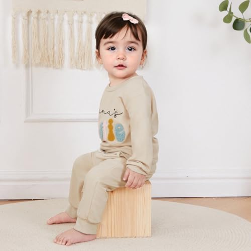 Toddler Baby Girl Fall Winter Clothes Embroidered Letter Graphic Crewneck Sweatshirt + Joggers Pants Outfits Set