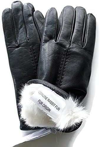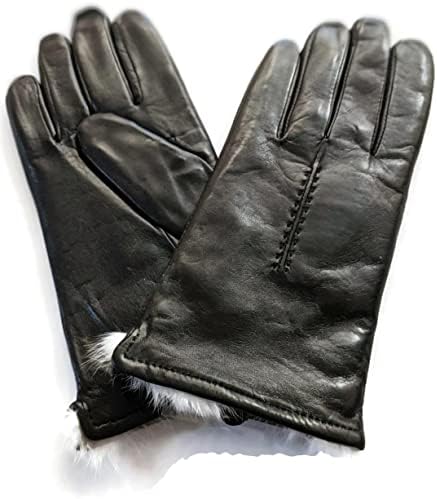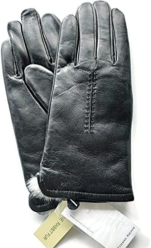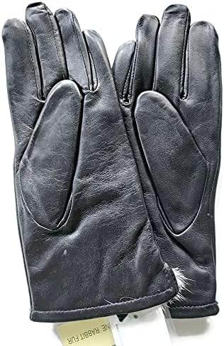 Ladies Rabbit Fur Lined Genuine Leather Gloves, Small Black