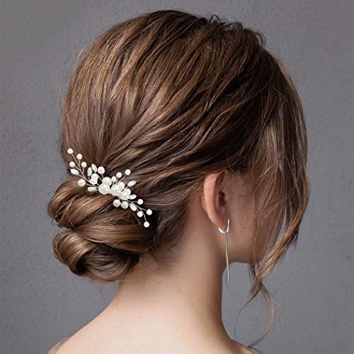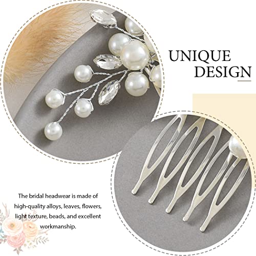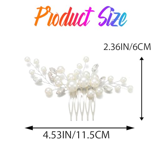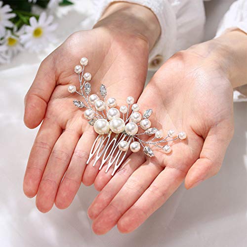Latious Wedding Bride Pearl Hair Side Comb Silver Rhinestone Bridal Hair Clips Crystal Hair Pieces Hair Accessories for Women and Girls (Silver)