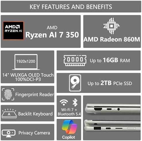 Sponsored Ad - Yoga 7 2-in-1 Copilot+ AI PC Laptop | 14" WUXGA OLED Touch (100% DCI-P3) | AMD Ryzen AI 7 350 (Up to 50 Tops) | 16GB DDR5 512GB SSD | for Creator Business Professional Win11pro w/DLCA A