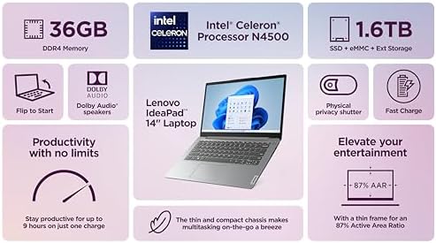 Sponsored Ad - IdeaPad 14" Laptop Computer 2025, 36GB RAM, 1.6TB Storage (1TB SSD +128GB eMMC +500GB Ext), Intel Core Processor, UHD Graphics, Long Battery WiFi-6, MarxsolAccessory, 1-Yr Office 365, W