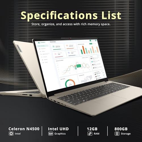 Sponsored Ad - IdeaPad 1 15.6" HD Laptop, Intel Celeron N4500, 12GB RAM, 512GB SSD+128GB eMMC, Intel UHD Graphics, Copilot, Number Pad, Webcam, 1 Year Office 365, Windows 11, Sand, 160GB Docking Stati