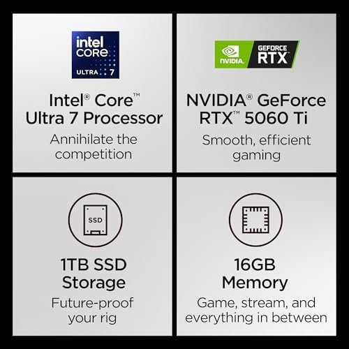 Legion Tower 5i – AI-Powered Gaming PC - Intel® Core Ultra 7 265F Processor – NVIDIA® GeForce RTX™ 5060 Ti Graphics – 16 GB Memory – 1 TB Storage – 3 Months of PC GamePass