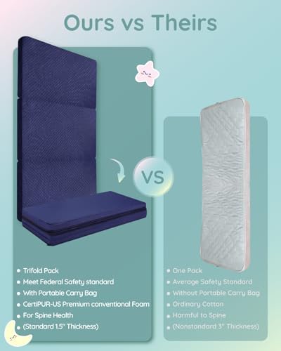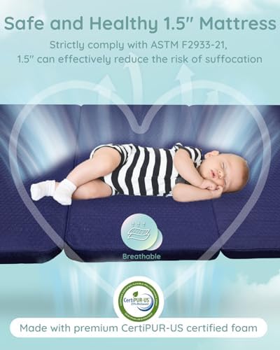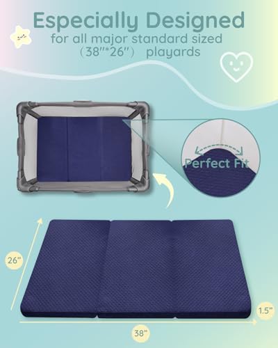 Pack and Play Mattress 38"x26"x1.5", Pack N Play Mattresses Pad for Play Pen and Playard, Premium Foam Playpen Mattress Topper with Washable Cover & Traveling Bag for Baby Toddler