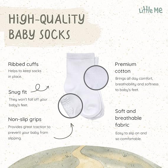 Little Me 20-Pack Newborn Baby Infant & Toddler Unisex Socks, 0-12/12-24 Months, Assorted Size Pack, White