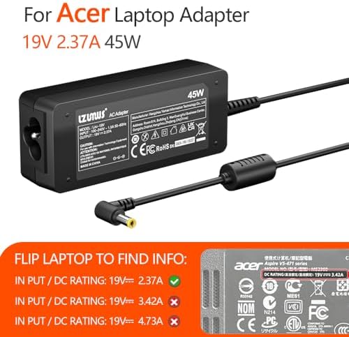Sponsored Ad - 45W AC Adapter Charger 19V 2.37A 5.5x1.7mm for Acer Laptop Adaptor Aspire P255 v15 5750 1400 A045R021L for Aspire 3/5 Series Power Supply
