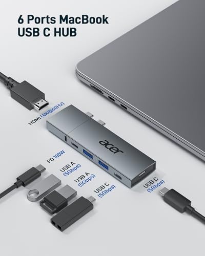 USB C Hub for MacBook Pro/Air M1 M2 M3, 6 in 2 Detachable 4K@60Hz USB C to HDMI Adapter with 2 USBA & 2 USBC 3.0 Data Ports, 100W PD Charging, USBC to USB Dongle Adapter