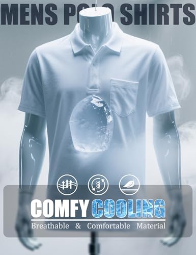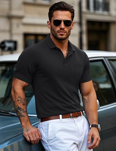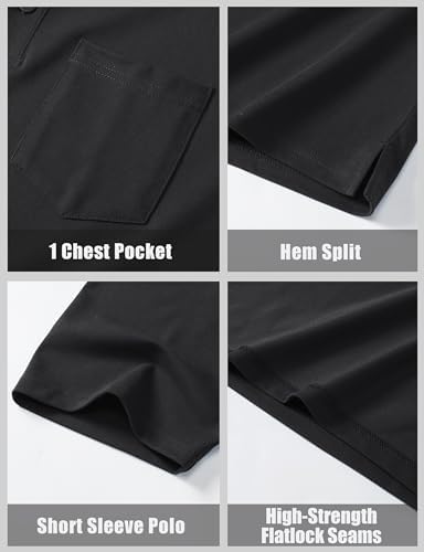 Mens Polo Shirts Short Sleeve Cotton Pique Golf Shirts with Pocket Casual Performance Moisture Wicking Polos Black M