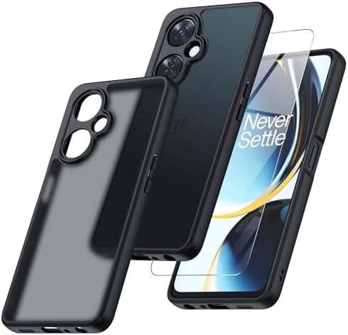 for OnePlus Nord N30 5G Case with Glass Screen Protector, Non-Yellowing Translucent Matte Shockproof Bumper Case, Slim Thin Yet Military Grade Drop Proof Phone Cover