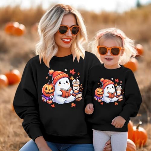 Mommy and Me Matching Outfits Halloween Sweatshirt Cute Ghost Pumpkin Sweater Spooky Season Baby Girl Fall Shirt