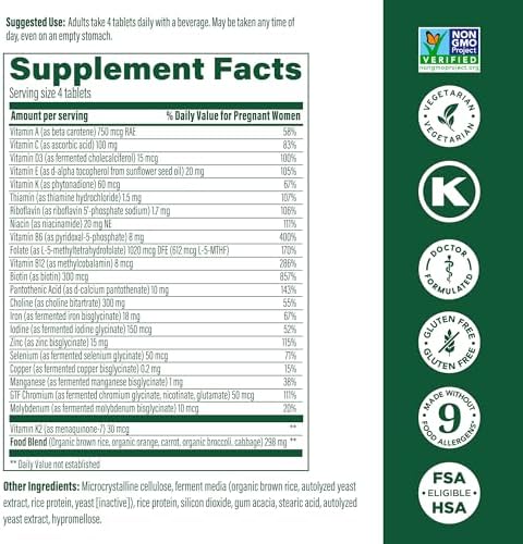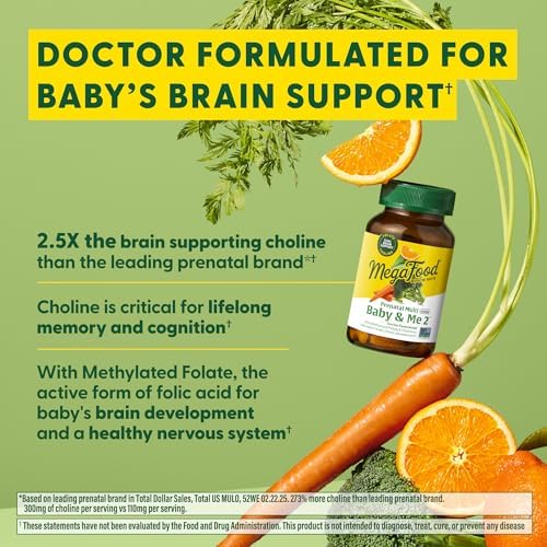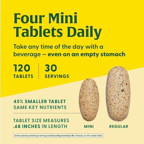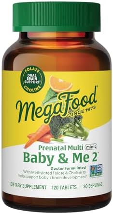 MegaFood Baby & Me 2 Prenatal Multi Minis - Prenatal Vitamins for Women with Choline & Methyl Folate - Gluten-Free, Vegetarian, Pre Natal Multivitamin for Women – 120 Minis Tablets, 30 Servings