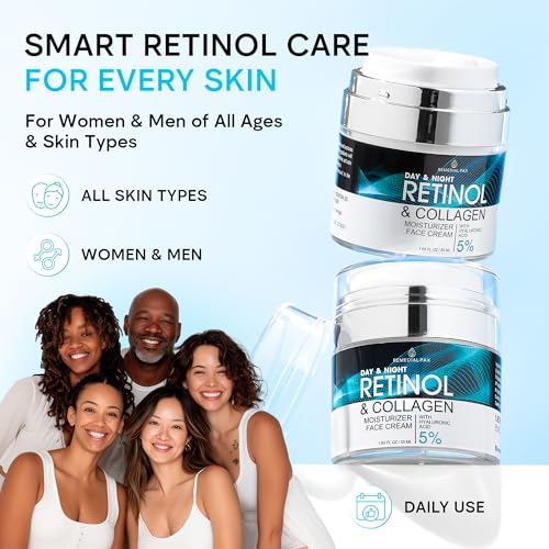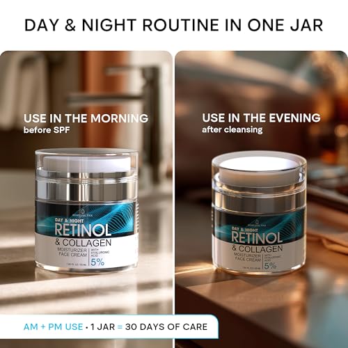Face Moisturizer Retinol Cream, Anti Aging Neck Firming Cream, Collagen Day & Night Face Cream with Hyaluronic Acid for Women & Men, 1.85 Fl Oz