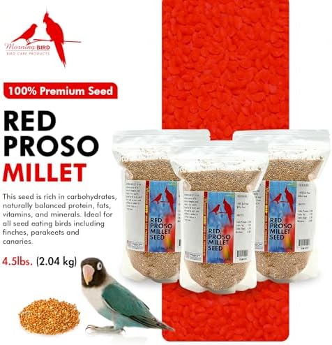 Morning Bird Red Proso Millet Bird Seeds 4.5 lbs (3-Pack, 1.5 lbs Each) – Healthy & Nutritious Pet Bird Food - Bird Seeds for Feather Growth – Perfect for Finches, Parakeets & Other All Pet Birds