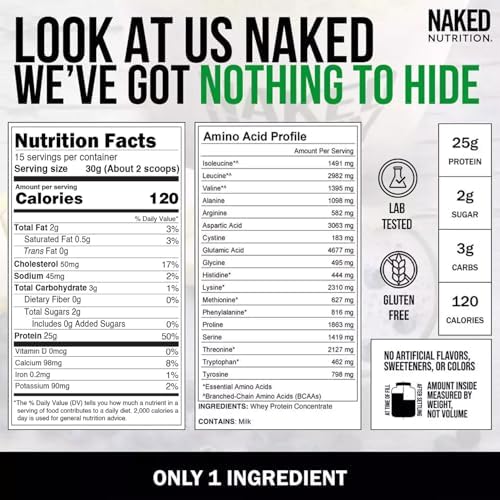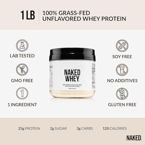 NAKED Whey 1Lb - Only 1 Ingredient, Grass Fed Whey Protein Powder, Undenatured, No Gmos, No Soy, Gluten Free, Stimulate Growth, Enhance Recovery - 15 Servings