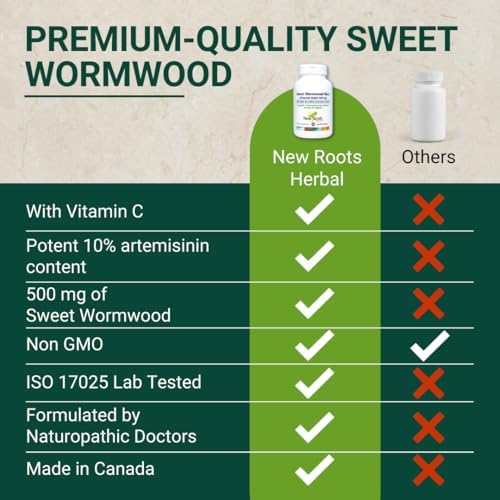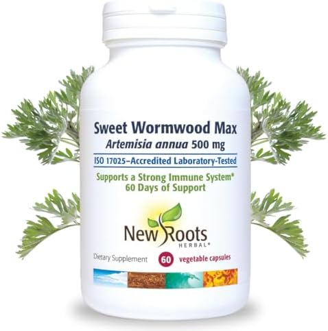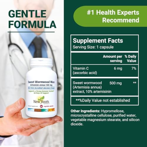 NEW ROOTS HERBAL Sweet Wormwood Extract Supplement (500 mg) Capsules with Vitamin C | Gut Cleanse and Detox Supplement with Worm Wood, Digestive & Immune Support (60 Veg Capsules)